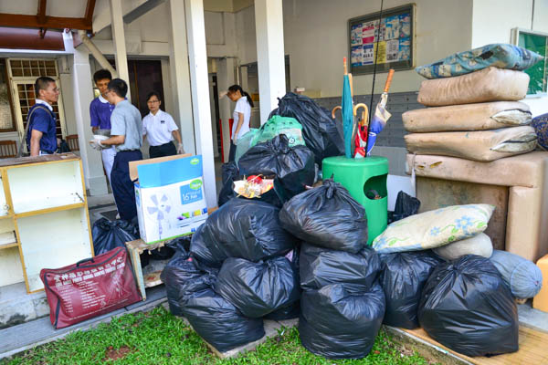 In May 2015, Tzu Chi volunteers and home care team members spent ten hours clearing two truckloads of unwanted items from Salih’s home. (Photo by Pua Poo Toong)