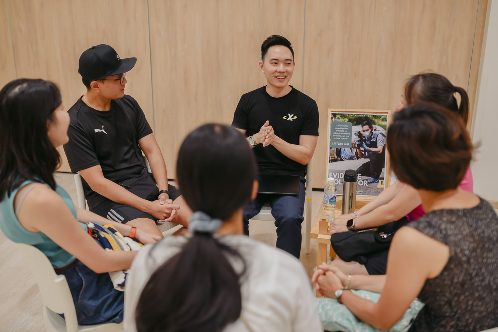 Participants Vinesh Mano (photo below, wearing a black cap) and his wife Maxine Chen (on his right) found the session eye-opening. They “borrowed” human books representing careers in nursing, publishing, quantity surveying, and evidence collection. Maxine was especially intrigued by Liu Yujun Dave, an engineering graduate who left his third job out of monotony and found purpose as an Evidence Collector, working alongside investigation officers at crime scenes.