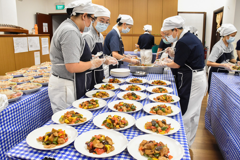 The volunteers diligently preparing delicious vegetarian dishes. (Photo by Chong Mong Zhuang)