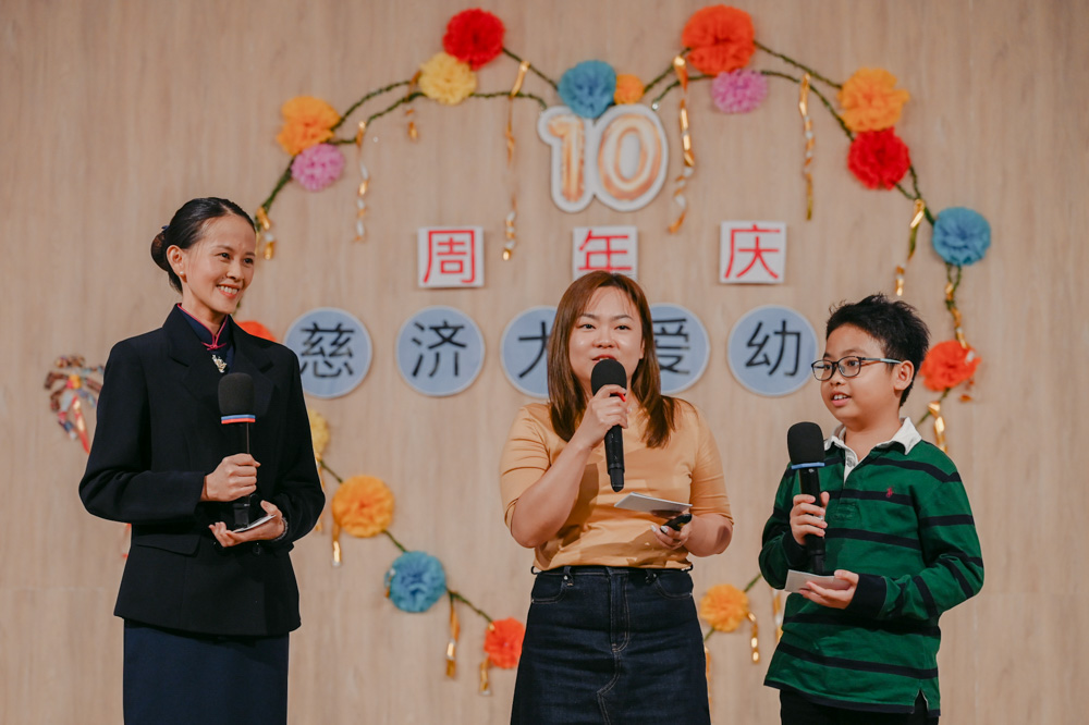 Amidst cheers as the cake was cut, Tzu Chi Great Love Preschool celebrated its 10th anniversary. On 24 August 2024, the school invited alumni and parents to celebrate the special occasion. 80 families made up of 300 students and parents came together at the Tzu Chi Humanistic Youth Centre to witness this milestone.