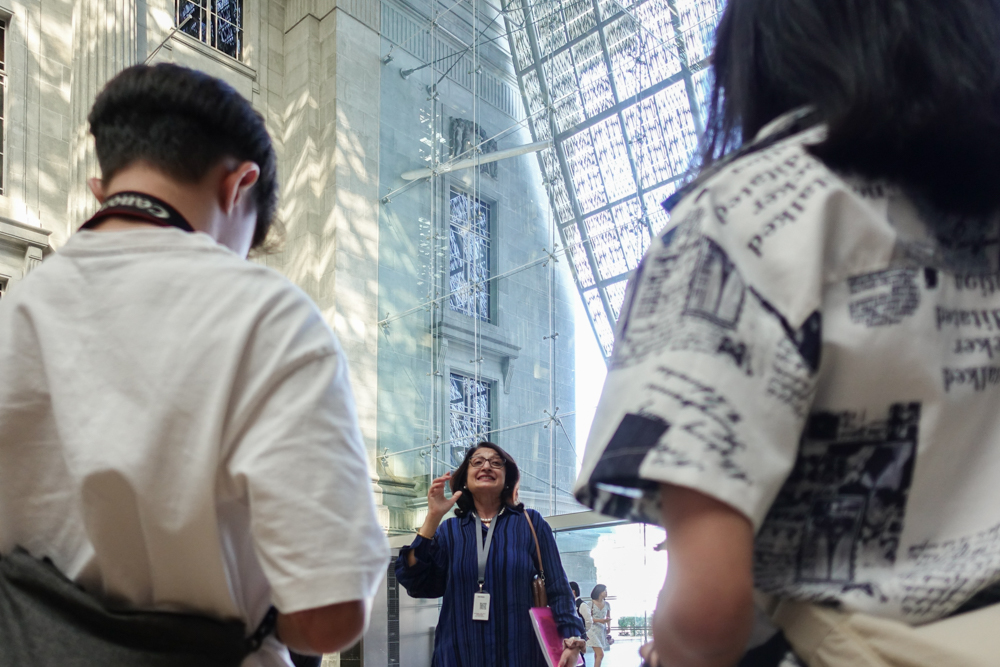 Organised by Trybe with support from Humanistic Youth Centre and powered by National Youth Council, Lens of Identity is a six-week programme that gives youths a chance to learn photography as well as explore non-conventional career pathways. Under the guidance of the docent, the 15 youth participants also explored the unique architectural style of National Gallery Singapore's historical building. (Photo by Tan Shay Ching)