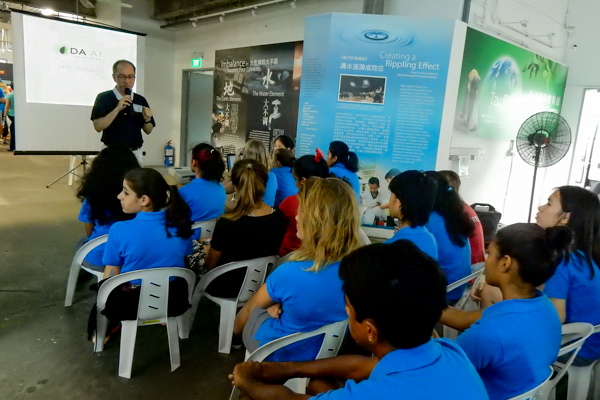 Volunteer leader Andrew Lim introduces Tzu Chi’s DA.AI Technology Co. Ltd to students.