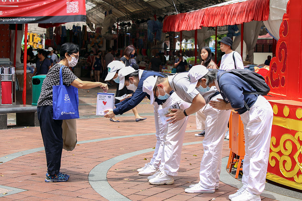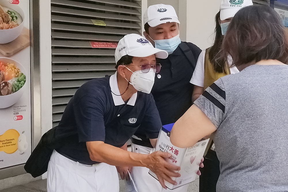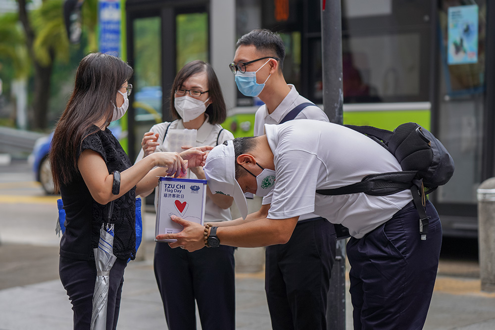 In 2015, Tzu-Chi Foundation (Singapore) applied to the National Council of Social Service to hold a flag day and took to the streets for the first time to raise funds. Flag days in 2020 and 2021 were suspended due to the pandemic. As control measures relaxed, volunteers once again reached out to the community to seek donations and inspire kindness.