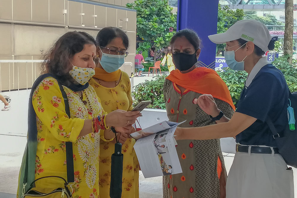 "Please share your kindness and wish you good health!" can be heard echoing throughout the marketplace, HDB void decks, MRT stations and temples. (Photo by Fong Kwai Kin)