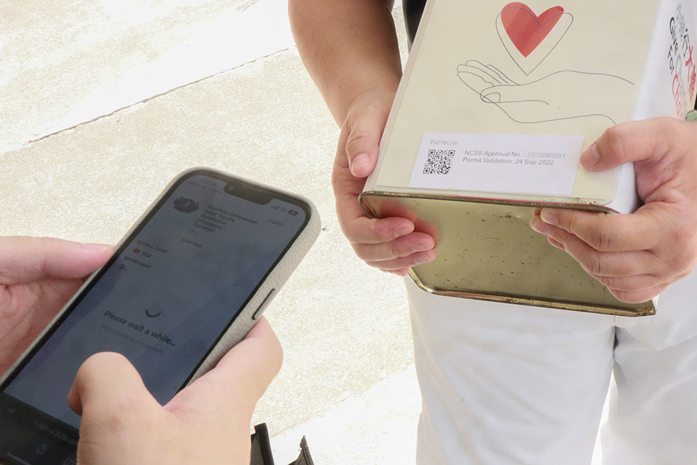 For the first time, Tzu Chi Flag Day has an alternative cashless payment method to raise money for charity. (Photo by Tew Yu Rui)