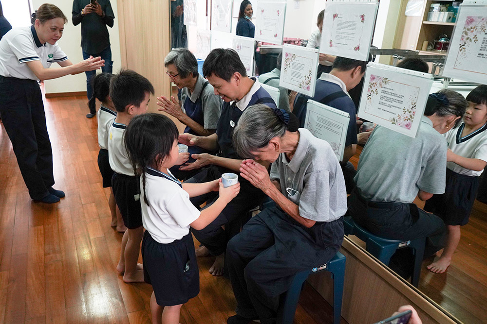 Apart from serving tea to the teachers, the school also arranges for students to serve tea to the school cooks, cleaners, part-time teachers and Great Love Mothers.