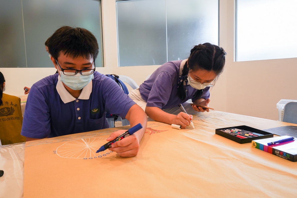 Tzu Ching youth volunteers also contributed in this activity through designing posters for everyone to leave their well-wishes on. (Photo by Chan May Ching)