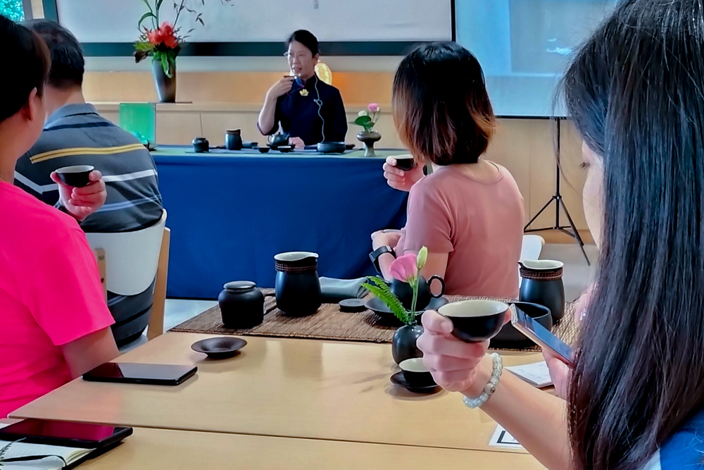 静思茶道体验课,茶道老师们用心营造茶境,同学透过茶事学习而丰富生命,接受艺术陶冶而美化心灵,时常演练茶礼而提升内涵。让学员们在品茶的当儿,可以静心、清心、净心。