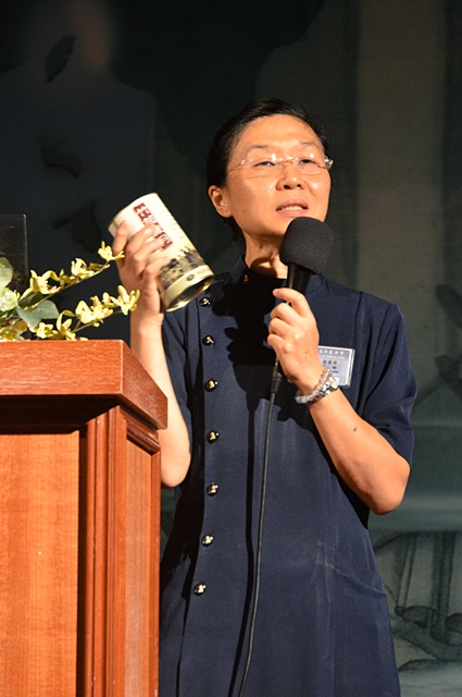 胡秀桃分享参与慈济八年的心灵风光,当自己做不下去时,回想上人难行能行的毅力,借此来勉励自己。 (摄 / 刘素方)