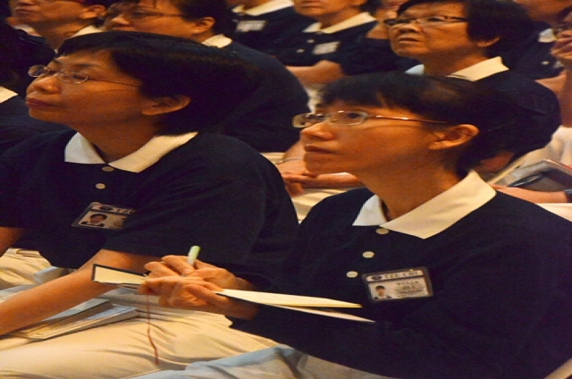学员们聚精会神地恭听上人开示,也用心地将上人的智慧法语一一做笔记。 (摄 / 刘素方)