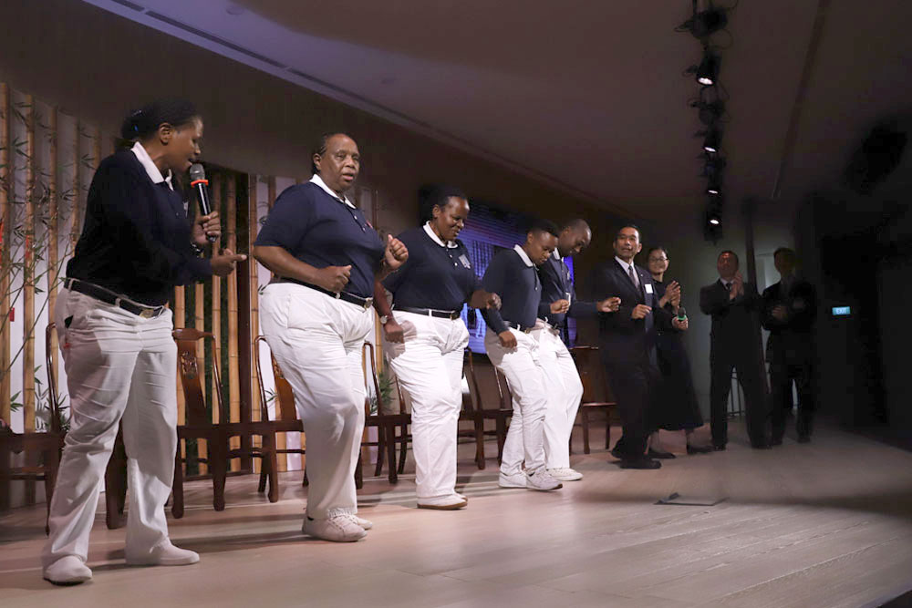 有一群黑皮肤的祖鲁族志工, 边歌唱边欢喜作伴,