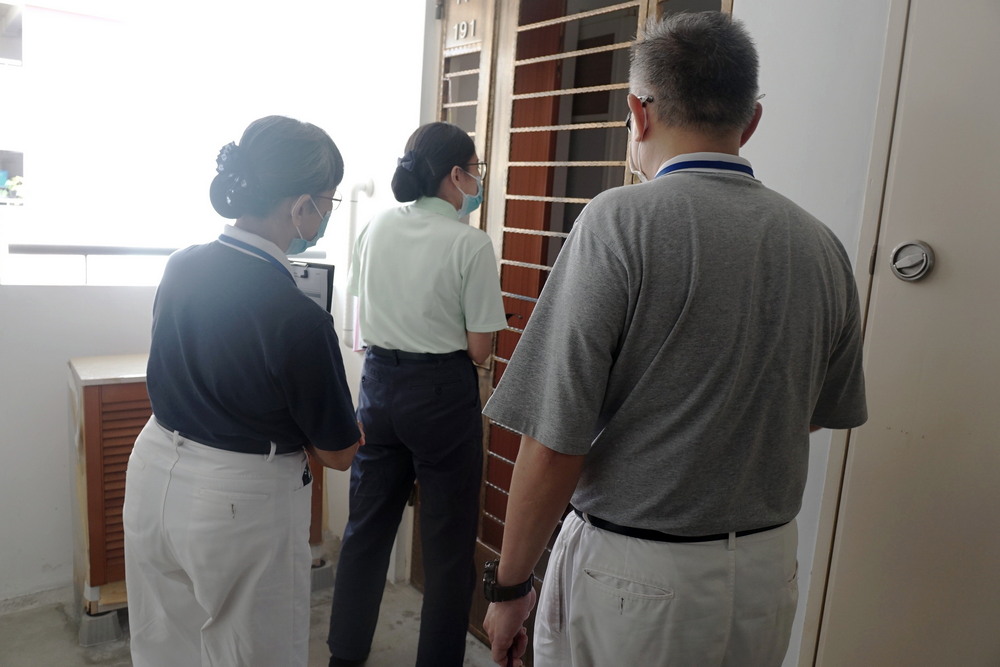慈济职志工在武吉巴督长青馆附近的组屋进行沿户造访爱洒活动。(摄 / 吴佳翰)