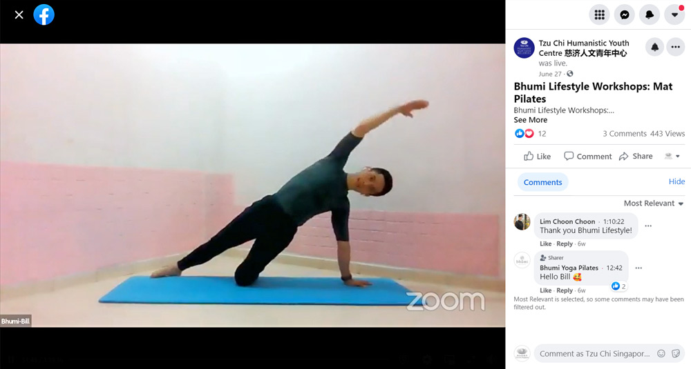九场直播当中,两场线上皮拉提活动是由青年中心合作伙伴Bhumi Lifesytle所主办。教练所教导的动作也经过调整,只需在软垫上就能达到排汗且放松身心的效果。还有四场心灵讲座则是由林香均教授所主讲,透过觉察、静坐、简单的身体律动、茶道等方式来排解客工朋友的心理压力和思念之情。
