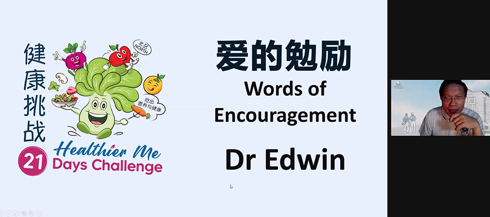 2021年9月26日“健康挑战21”说明会上,播放雪隆分会慈济人医会召集人陈成亨医师的一则录影。他见证了植物性饮食如何令一个罹患三高与严重心血管病的病人,在三年里从需要动手术改善到无需吃药。