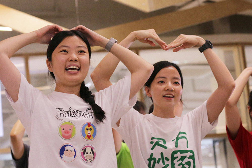 “人的一生,守口最难, 改变习惯,并不简单,诚心发愿,一定有力量!”林梅娇和志工充满活力地演唱《蔬素翻转新生命》。(摄/ 伍书永)