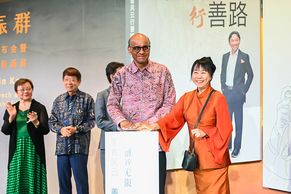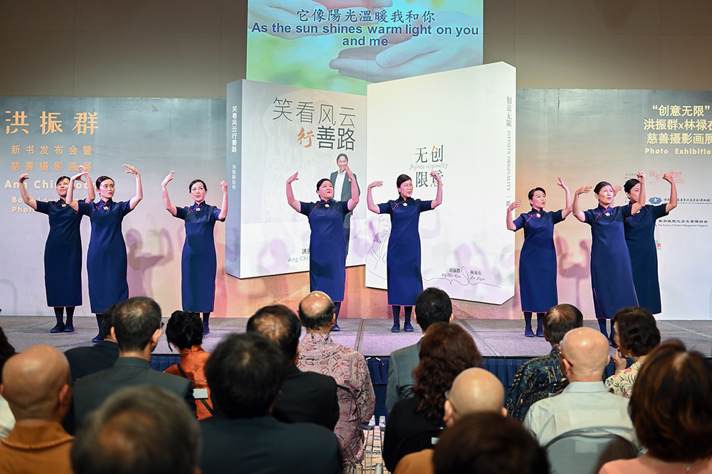 “笑、看、风、云、行、善、路;创、意、无、限!”在众人呼喊的口号和欢呼掌声中,尚达曼总统和夫人珍一藤木女士为洪振群新书发布会暨慈善摄影画展隆重揭幕。