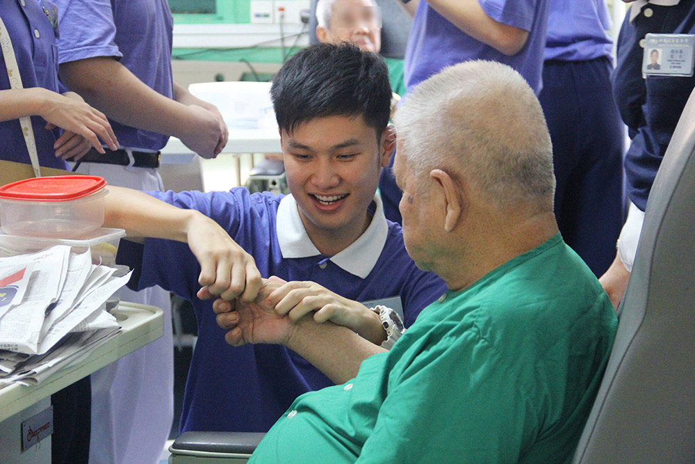 从早期的“喜乐之家”麻疯病院、到后来的李亚妹安老院及萨司歌乐龄之家,藉由病患和年长院友的人生经历,慈青从中体悟生命无常和反思人生意义,体会到课堂上学不到的人生智慧。此外,每月一次于慈济义诊中心值班,慈青协助登记挂号,也用心陪伴前来看诊的阿公阿嫲。