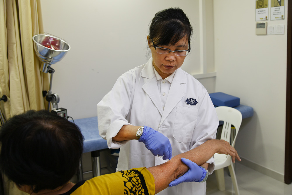 广受华人社会欢迎的中医服务,在老年人口相对偏高的红山社区需求不俗。因此,慈济义诊中心(新加坡)自2011年11月拓展中医部,增设周一至周五的全天门诊,以便充分运用其空间为民众谋福。中医门诊对象不设门槛,不分宗教种族,皆可免费享有内科和针灸服务。经长期耕耘,中医部于2022年10月正名为佛教中医义诊中心(红山)。